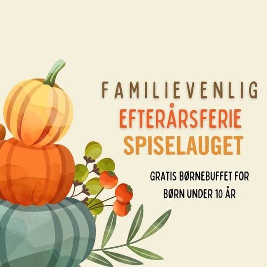 Spiselauget står klar til at hygge om alle aldre hele efterårsferien. Om dagen er der gratis børnebuffet i forbindelse med smørrebrødsbuffet, og om aftenen er DinnerDays-menu er det perfekte setup til en aften fyldt med hygge og lækker mad!